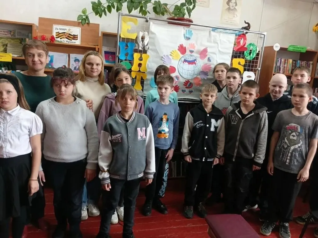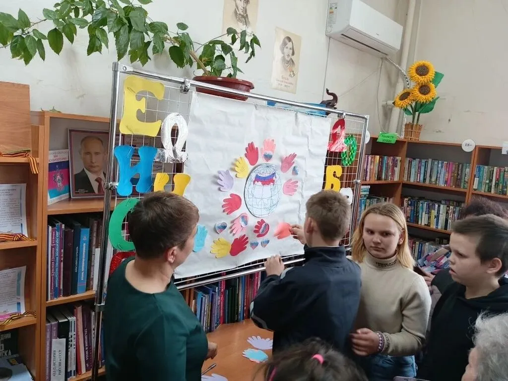 Ребята узнали о ярких национальных костюмах, самобытных обычаях и уникальном укладе жизни русских, башкиров, татар и др. национальностей. Особое внимание было уделено тому, как важны дружба, взаимоуважение и единство в многонациональной стране. Библиотекарь объяснила, почему так важно беречь культурное наследие и уважать представителей разных народов. К мероприятию была организована книжная выставка "Год единства народов России".